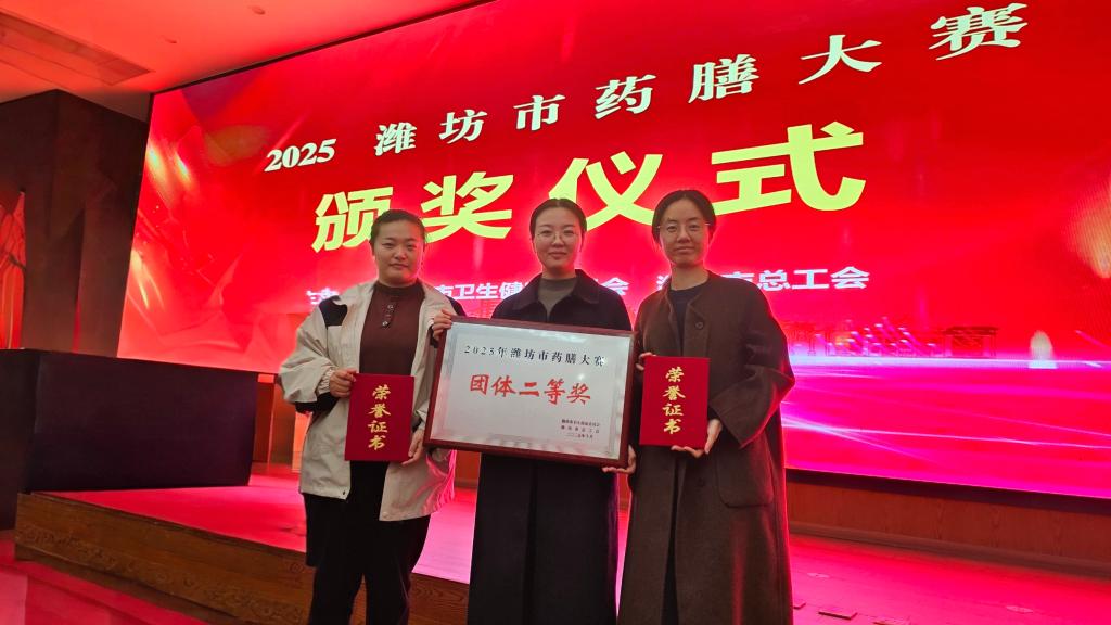 10月31日,由潍坊市卫生健康委员会、潍坊市总工会联合主办的2025潍坊市药膳大赛圆满落幕。本次大赛汇聚全市18支实力强劲的代表队,共54名选手同台竞技。其中,潍坊护理职业学院中医系选派的张倩、赵晓君、张玉晗三位教师组成的参赛队伍,在此次竞赛中凭借扎实的专业功底脱颖而出,最终喜获团体二等奖。其中赵晓君、张玉晗两位教师斩获个人二等奖。