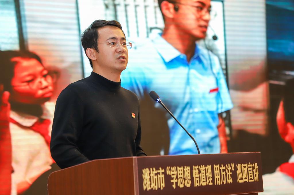 宣讲活动中,来自不同领域、不同岗位的宣讲员依次登台,以真实的故事、鲜活的语言、饱满的情感,讲述了新时代的奋斗篇章。潍坊市王尽美革命事迹教学基地服务中心杨洋以《尽美故里的“红色号手”》再现了革命先烈的热血足迹;潍坊农村干部教育实践中心张雪萍在《“百姓书记”的时代答卷》中动情讲述了王伯祥同志的为民情怀;世界技能大赛冠军孙伟龙分享了他从中考失意的“差生”到为国争光的“新时代青年工匠”的励志逆袭之路;宣讲员李心怡带来的《生命之桥》,深情讲述了张军桥医生在异国他乡用生命托举希望、践行大爱无疆的壮举;山东经贸职业学院学生们演绎的情景剧《红色家书》,以文艺形式让不朽的革命精神跨越时空,照亮人心。潍坊益都中心医院护士岳淑娟则从医护工作者的视角,讲述了一个与病魔抗争、因爱重生的感人故事,体现了“有时去治愈,常常去帮助,总是去安慰”的医学人文关怀;李奎辰带来的《从三次“划时代”改革看国家富强必由之路》,以宏观的历史视角深入剖析改革的发展脉络,激励青年将个人命运融入国家发展大局之中。