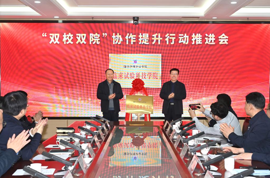 会上,马安宁和崔照忠共同为“临床试验科技学院”揭牌。该学院是我校主导成立的科研机构,是响应国家“深化现代职业教育体系建设改革”的具体行动,也是我校拓展办学特色、服务生物医药与大健康产业的战略选择。下一步,学校将继续深化产教融合、科教融汇,在人才培养、社会服务、成果转化、平台搭建等方面持续发力,为健康潍坊建设注入持久智力支持和人才动能。