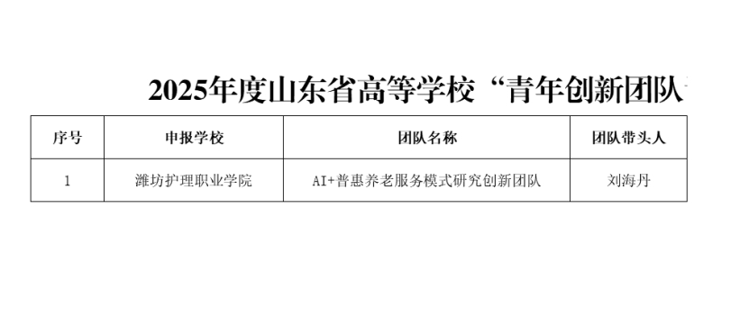 近日,山东省教育厅正式公布2025年度山东省高等学校“青年创新团队计划”认定名单,由中医系刘海丹博士主持申报的“AI+普惠养老服务模式研究创新团队”成功入选,标志着我校在跨学科科研创新团队建设方面迈出关键步伐。