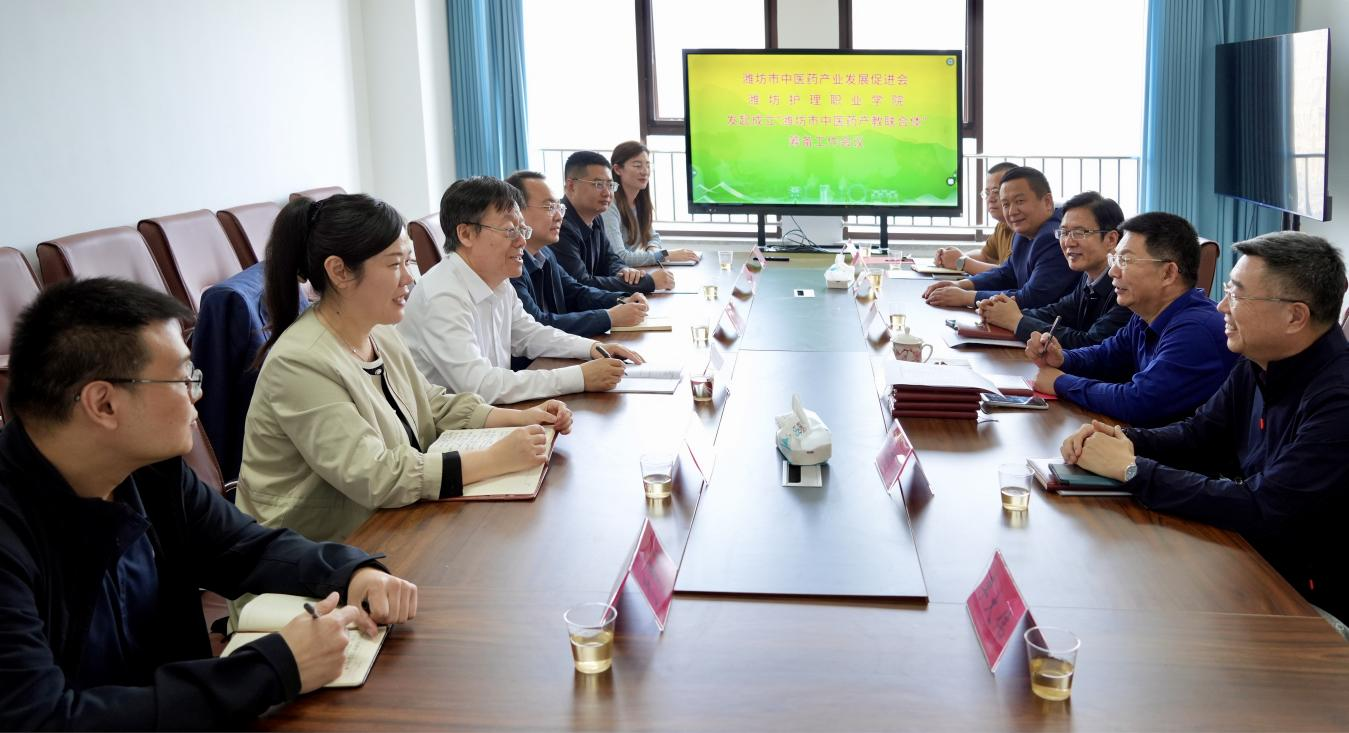 4月18日,党委书记崔照忠一行到访潍坊市中医药产业发展促进会,就发起成立“潍坊市中医药产教联合体”召开专题筹备工作会议。促进会会长吴海源及相关负责人出席会议。双方围绕联合体组织架构、运行机制、合作路径等进行深入磋商,达成广泛共识。