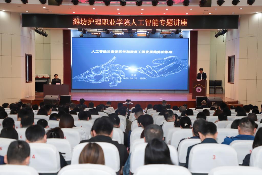 崔照忠对李斌的精彩分享表示感谢。他指出,当前新一轮科技革命加速演进,国家关于教育数字化及AI赋能医疗健康的系列政策,为学校发展指明了方向。当前,学校正处于“双高”建设攻坚和高质量发展的关键时期,全校上下要深刻认识到AI不是简单的技术工具,而是推动办学理念、育人模式、治理方式系统性重塑的核心引擎。他强调,全体教职工要将AI思维融入办学治校、教育教学的全流程、各方面,锚定事业高质量发展核心目标任务,在AI技术落地上下功夫,真正让人工智能技术成为强教学、优治理、育新人、促发展的关键变量,聚焦康复工程、智慧养老、数字诊疗等领域形成“潍护方案”,以标志性成果服务“更好潍坊”建设和健康中国战略。