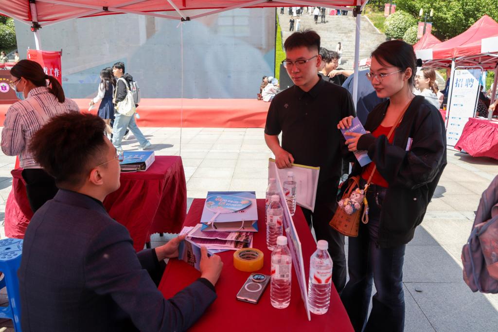 作为本次招聘会的亮点之一,学校联合专业机构在主会场打造集智能化、一站式、全流程于一体的AI数字就业服务区,投放人工智能简历一体机、落地式面试一体机、职业生涯规划测评一体机、就业指导综合服务机、就业赋能一体机五大智能设备,为学子免费提供生涯规划、简历优化、模拟面试、岗位匹配全链条智能服务。