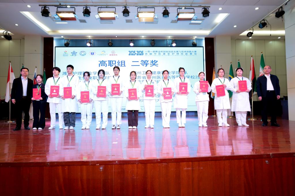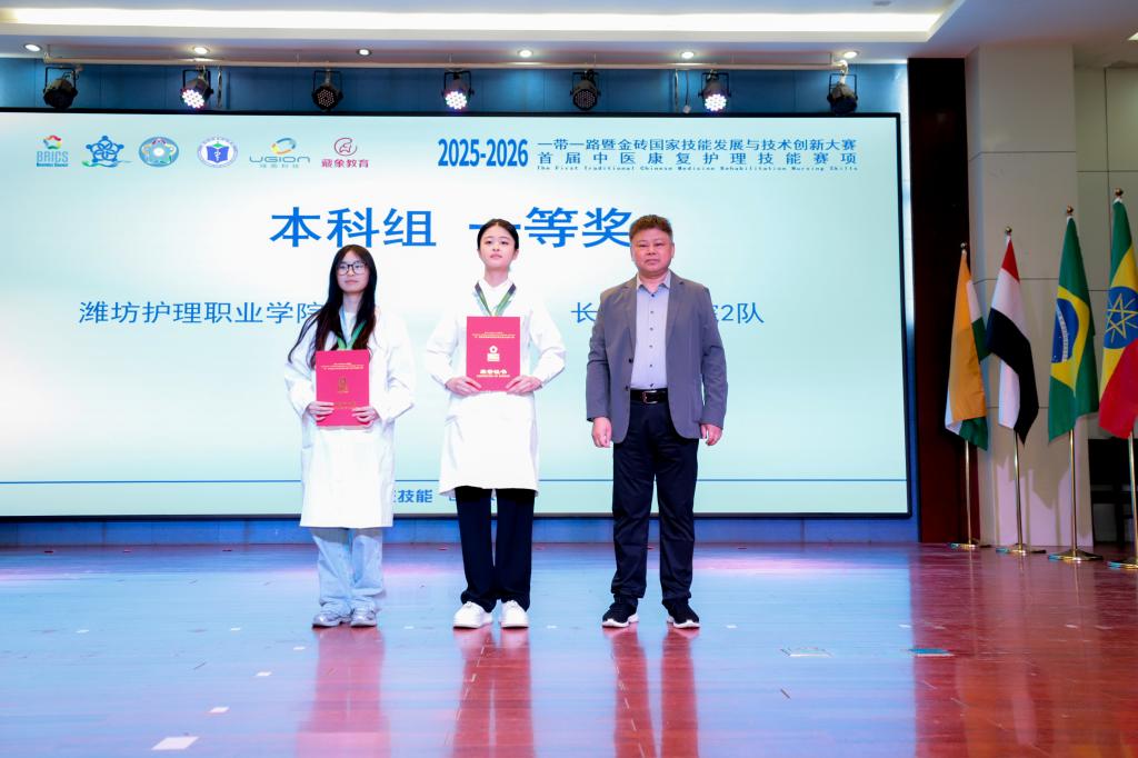 日前,2025-2026一带一路暨金砖国家技能发展与技术创新大赛首届中医康复护理技能赛项在潍坊护理职业学院圆满落幕。本次大赛汇聚全国99支参赛队伍、198名师生同台竞技。我校凭借硬核实力与专业组织,荣获“突出贡献奖”“最佳组织奖”,选派的三支参赛队伍斩获2项一等奖、1项二等奖,再创学校在该高水平国际赛事中的历史新高。