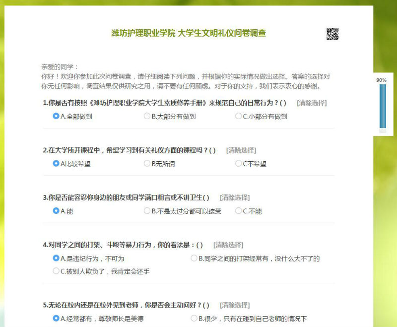 10月15日至20日,院学生会发起了针对我院大学生文明礼仪的专项调查,调查显示,当前我院绝大多数青年学生的文明素养达到了较高水平,但在个别同学身上也存在一些常见的不文明现象。