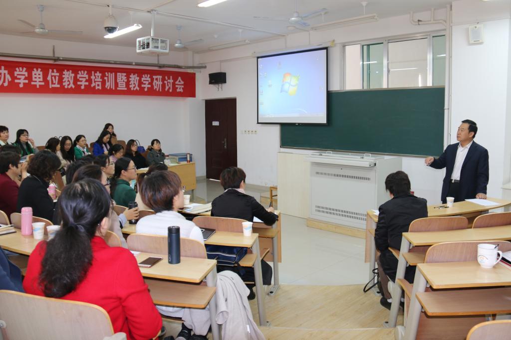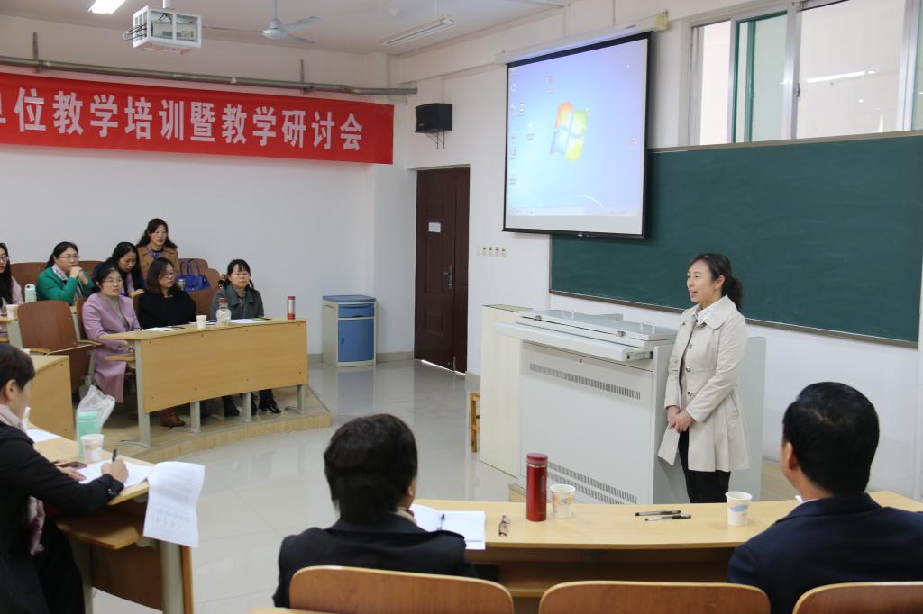 另外,护理系教学科负责人刘淑琴老师进行了教学常规培训。山东省教学名师闫瑞霞以“子宫肌瘤病人的护理”为主题进行了优秀教师示范课。最后,各专业课负责人和联合办学单位相应课程的老师分组进行了教学对接。