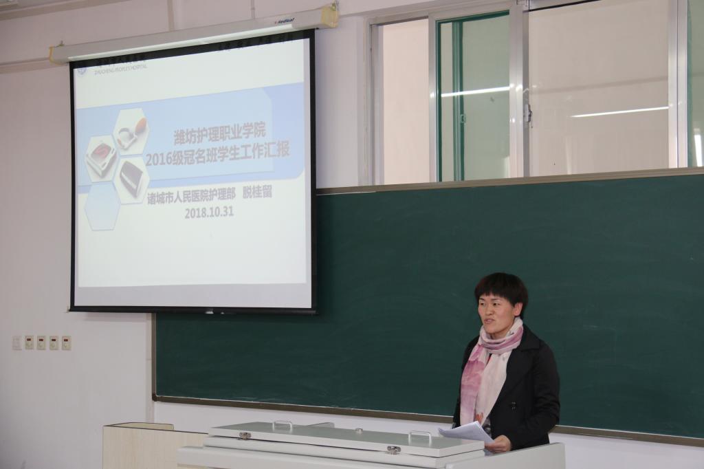 诸城市人民医院护理部副主任脱桂留同志做了精彩的经验分享,分别从前期准备工作、学生学习、生活、临床实习带教等方面进行了详尽的介绍。
