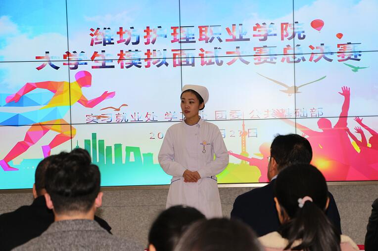 本次活动,由实习就业处联合护理系、学工处、团委和公共基础部共同举办,旨在让同学在校内就能真切感受面试氛围,也给同学们提供一次挑战自我的机会,使大家对面试有更深入、更全面的认识。为了保证比赛质量,前期实习就业处联系了中公教育和海王民康的领导为大家做了专业指导,包括面试流程和技巧以及简历制作等。学生参与热情极其高涨,共提交简历259份,402人报名参加面试环节。经过初赛评选,杜晓婷28位同学进入面试大赛总决赛,王梦雨等10名同学获评“优秀简历”。