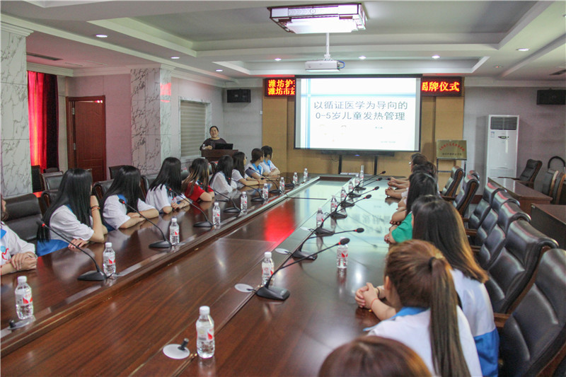 揭牌仪式结束后,潍坊市益都中心医院的优秀社工和医务人员为大学生进行了志愿服务知识培训。(益都校区教管中心)