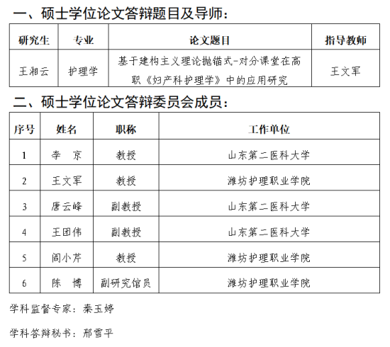 兹定于2025年11月21日(周五)15:30-17:00,在潍坊护理职业学院就业创业赋能中心A103路演室举行山东中医药大学硕士研究生学位论文答辩会,欢迎广大师生参加。