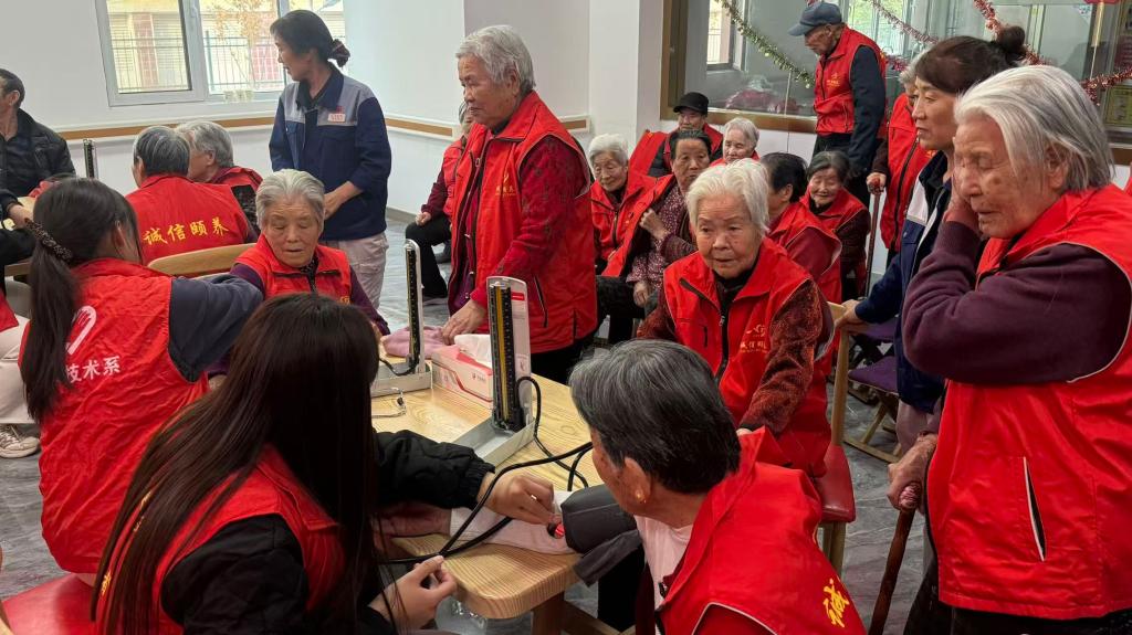 活动伊始,志愿者们便开启了“健康守护模式”,为老人们提供免费血压测量服务。他们小心翼翼地为老人绑上袖带,一边调试仪器,一边轻声询问老人近期的饮食、作息与用药情况。“大爷,您的血压很稳定,平时多注意休息就好。”“奶奶,您要是感觉头晕,一定要及时跟护理人员说。” 一句句贴心的叮嘱,一声声温暖的宽慰,让老人们紧锁的眉头渐渐舒展。当看到血压数值正常时,老人们眼中满是安心,一位爷爷拉着志愿者的手笑着说:“重阳节有人惦记着我们的身体,心里比吃了蜜还甜!” 这看似简单的健康监测,不仅为老人们的身体状况筑起 “防护网”,更让老人们在节日里感受到了细致入微的关怀。
