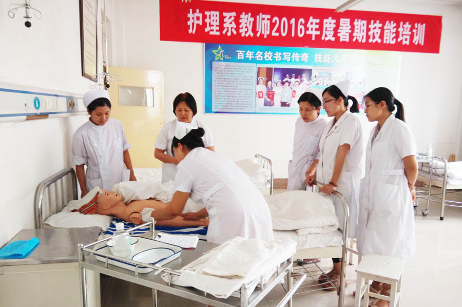 护理系为满足“技术技能型”人才培养需要,增强教师实践操作能力,提高教育教学质量,于7.11-7.24举办了护理技能培训。培训教师为潍坊益都中心医院、青州市人民医院的护理专家,参训教师为基础护理与护理人文教研室的全体教师、基础护理实验员等22名教师。