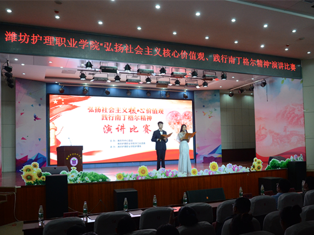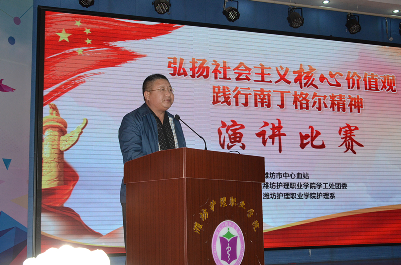 为积极践行不忘责任、敢于担当、乐于奉献的南丁格尔精神,引领青年学生不忘初心、牢记使命、大力弘扬社会主义核心价值观。在五·一二国际护士节来临之际,由潍坊市中心血站、学院学工处团委主办,护理系承办的“弘扬社会主义核心价值观 践行南丁格尔精神”演讲比赛于5月10日下午3时在主校区图书馆报告厅正式拉开帷幕。