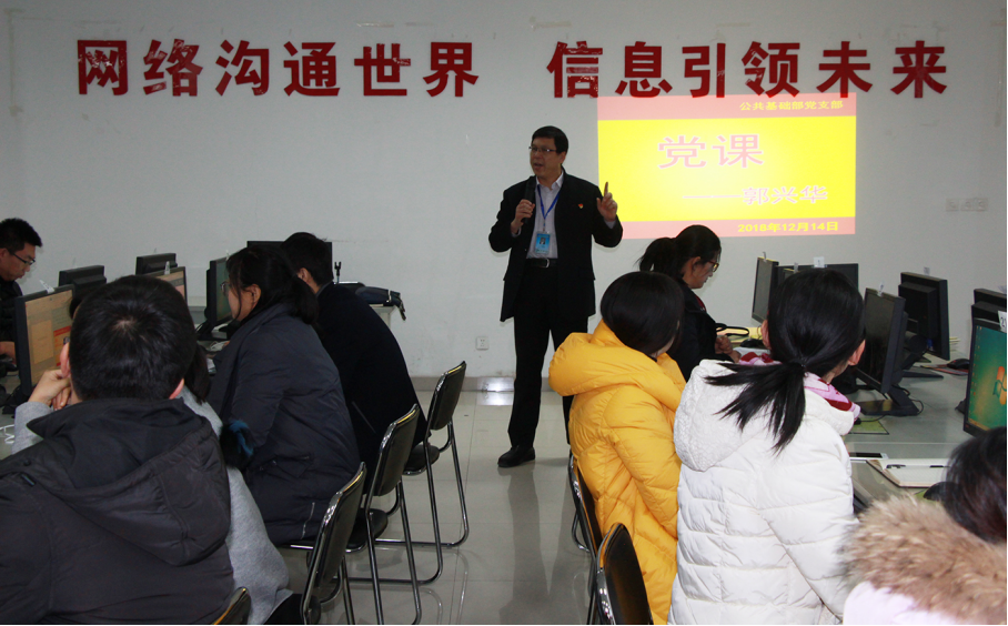 只有有效的课堂教学,才能让学生学有所得,学有所感。有效教学是课堂教学永远追求的目标和理想,党课也是课堂,党课应如何在形式上创新?如何让党员“学生”们学有所得、学有所感,当党课遇到混合式教学,会擦出怎样的火花?2018年12月12日下午,党支部书记郭兴华以“社会主义核心价值观”为“道”,以“混合教学”为“器”,一场线上线下、理实一体、别开生面的党课在学院图书馆机房205室举办,公共基础部全体党员和教师参加。
