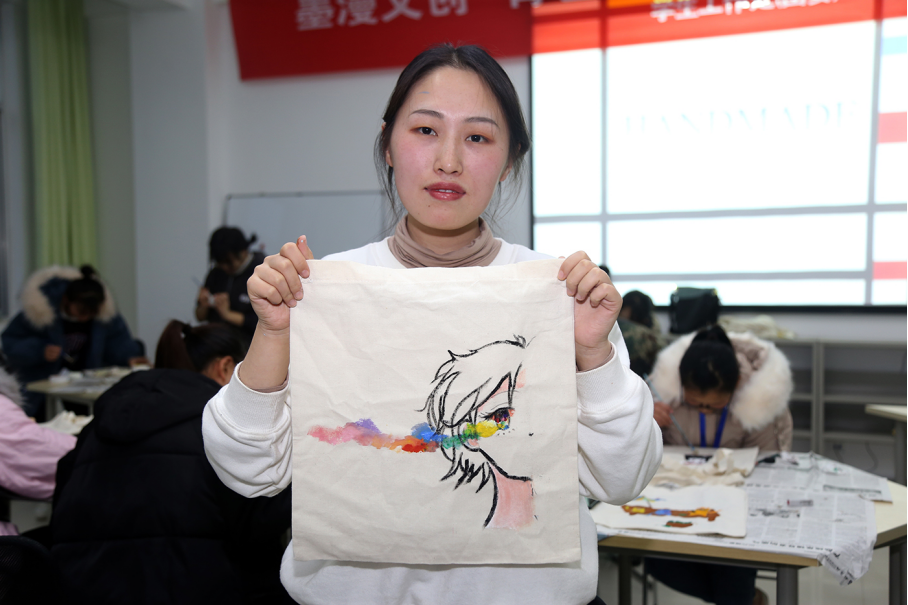 活动中,学生们通过自己丰富的灵感运用丰富的线条与绚丽的色彩,通过手绘的方式设计了一个个富有创意的帆布包作品,实习就业处孙照国处长、“墨漫文创绘画社”负责人赵林峰老师、全程参与绘画技术指导。通过本次活动的举办,学生们对绘画的喜爱的印象更为深刻,学习致用的能力显著增强。(公共基础部实习就业处学生工作处)