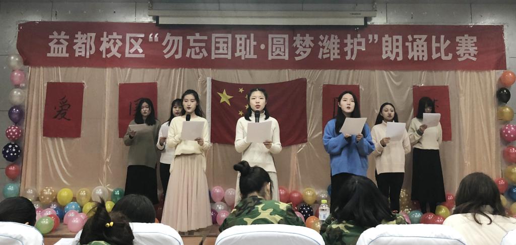 2018年12月14日,潍坊护理职业学院益都校区在六楼报告厅举办了“勿忘国耻,圆梦潍护”的大型爱国主义朗诵比赛。此次活动由益都校区主办,社团联合会朗诵协会承办。