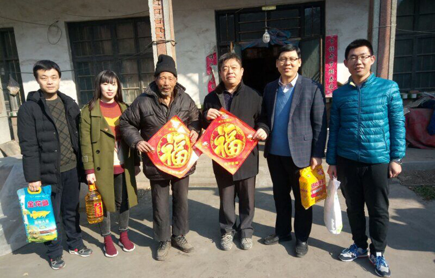 道一声亲切问候,送一份新春祝福。郭兴华支部书记带领大家前去慰问了赵文芹、冯保举两户卧病在床的结对帮扶困难户,给他们送去了学院节日的问候,并亲自将面、大米、食用油、饼干等慰问品送到他们手中。支部专职副书记张杨同志为帮扶户特意挑选了新年对联,为山村小院增添了红红火火的暖意。物资有限,心意无限,慰问中,郭兴华书记和老师们与帮扶户老人们亲切交谈,细心询问了他们的身体及生活状况,倾听他们的困难和需求,叮嘱他们一定保重身体,乐观生活,心情好了,病就好了,鼓励他们树立战胜困难的信心和勇气。村民们感激地诉说着自己生活的变化,感谢学院一直以来的关怀,言辞朴实无华,却真切地透露着发自肺腑的幸福感。