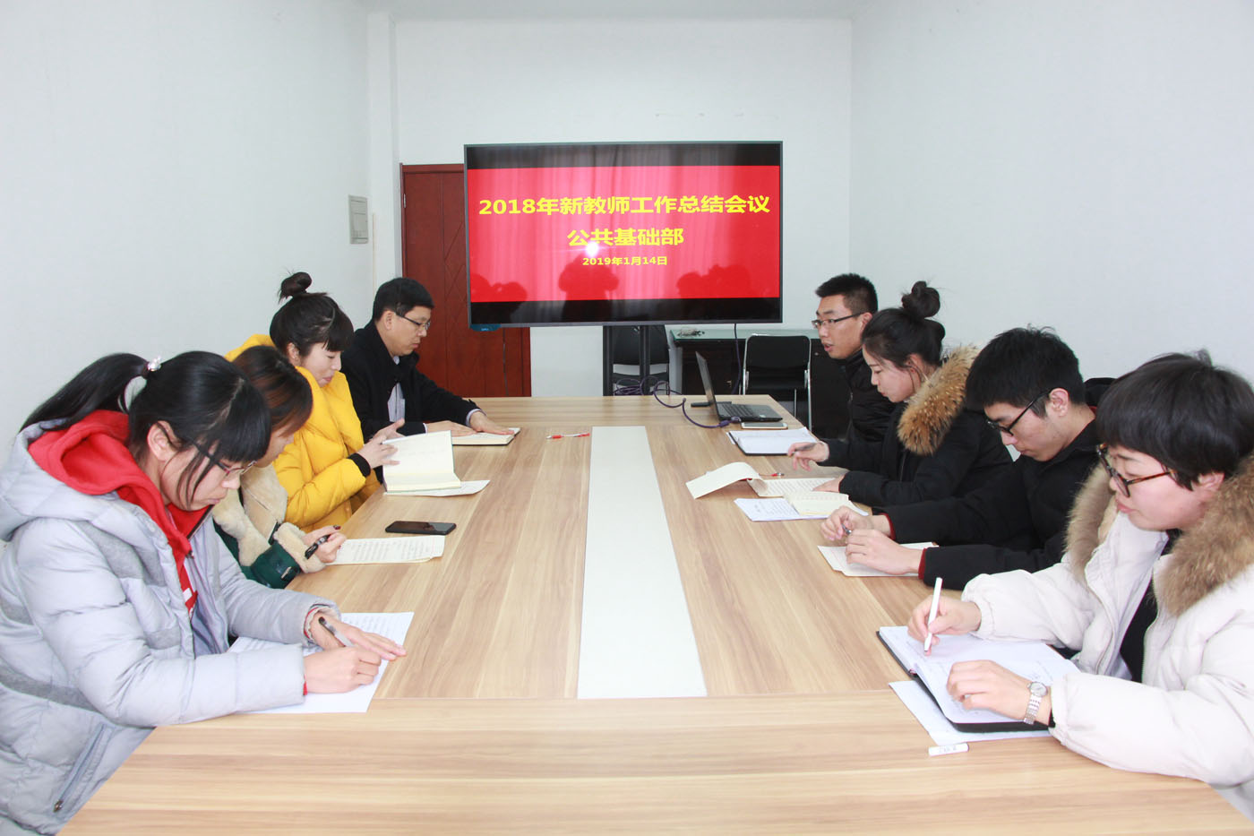 2019年1月14日下午,公共基础部在大学生服务中心四楼F16室组织召开“新教师培养工作交流会”。公共基础部七名新教师分别从思想状况、教育教学、活动参与、素质拓展、不足之处、新年展望六个方面对过去半年工作生活学习情况进行交流发言。