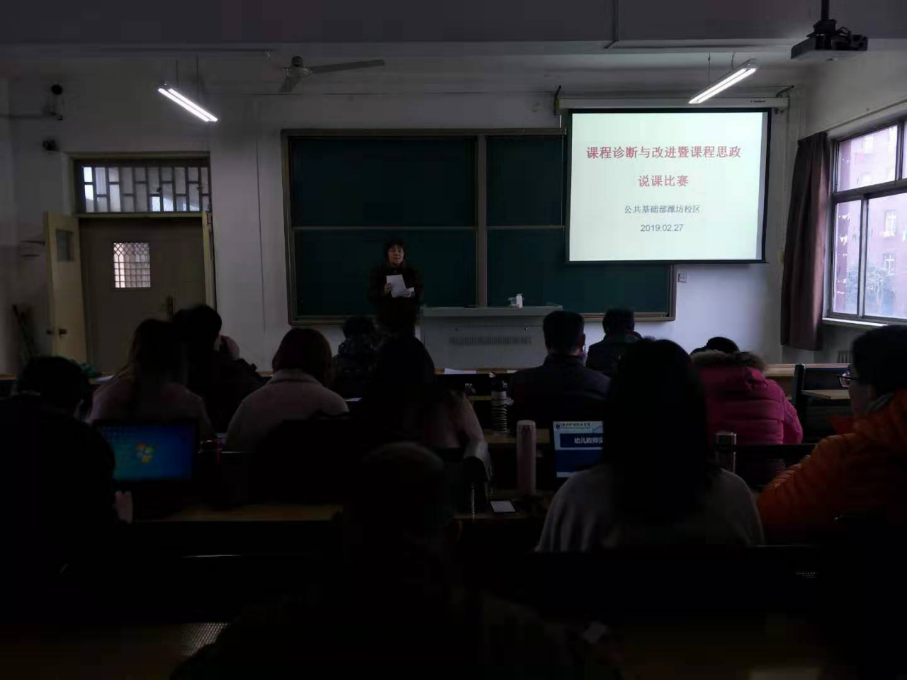 为响应学院“强学习、提站位、深反思、促整改”专题教育活动号召,促进教师快速成长,培养教师把握教材、运用教材的能力,提高课堂教学水平,达到以“说”促“教”的目的,根据学院相关文件精神和公共基础部工作安排,2月27日下午,公共基础部潍坊校区开展了“课程诊断与改进暨课程思政”说课比赛活动。