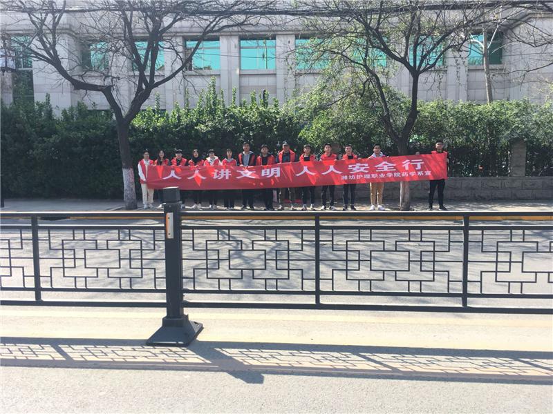 2019年4月12日下午,药学系举行 “文明交通,安全出行”活动,活动地点在益都校区门口以及益都中心医院附近,共有20多名志愿者参与。