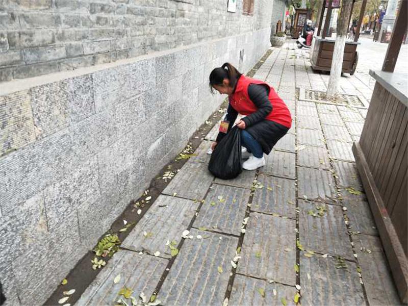 活动持续进行了两个小时,志愿者队伍又来到了古城清洁道路。志愿者分成三组,分别对古城道路上的垃圾进行“大扫除”,将捡的垃圾放进自备的垃圾袋,统一将垃圾收入垃圾箱。