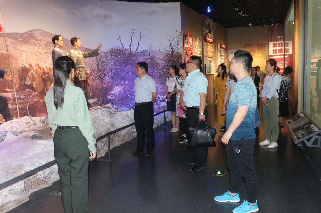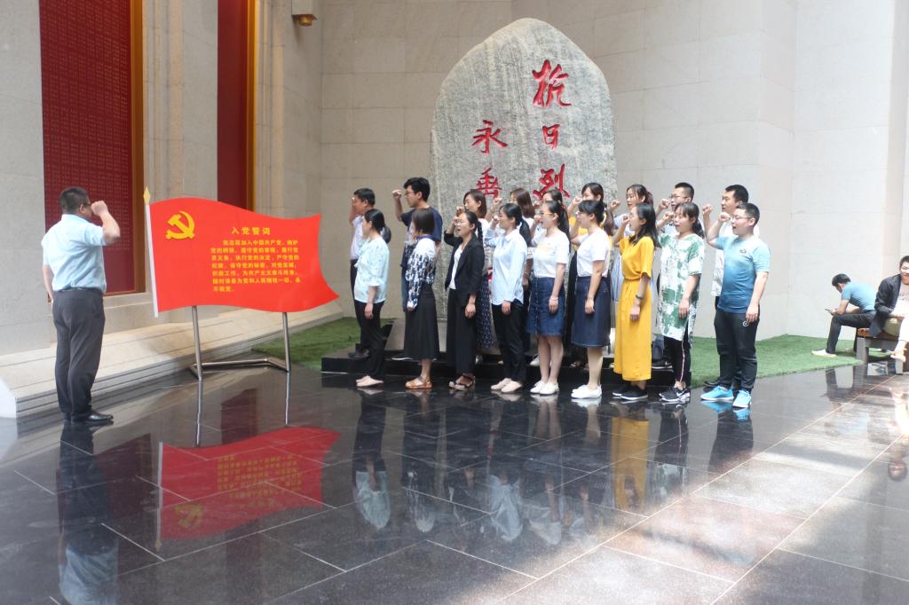 在莱芜战役纪念馆和鲁中抗日战争展览馆,丰富的历史文物、详实的文史资料以及现代化的多媒体表现形式,把大家带回到了那个枪林弹雨、弹火横飞的战争场面。特别是通过战争全真模拟场景,再现峥嵘岁月,身临其境,十分震撼,使大家认识到中国共产党在鲁中区带领广大军民抗击日寇保家卫国和莱芜战役的艰辛历程,感受到无数革命先烈以身报国的爱国情怀和英勇顽强的战斗精神,对党带领人民进行民族独立、国家富强人民富裕进行艰苦卓绝的斗争,取得举世瞩目成就,有了更加深刻的认识。随后,大家怀着崇敬之情瞻仰了革命烈士纪念塔,并在纪念塔前面对鲜红的党旗,举起右拳,举行了庄严的重温入党宣誓仪式。
