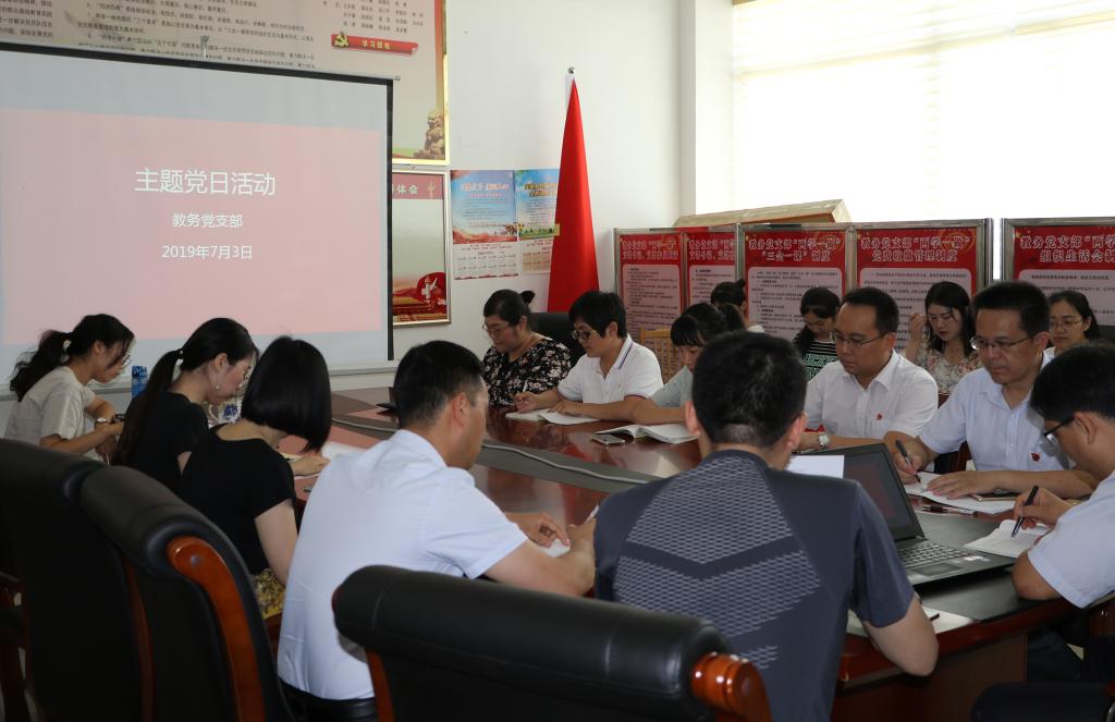 首先,李振华同志总结了2019年上半年教务支部党建工作,他指出,支部在推进全体党员领导干部政治理论学习和党的思想建设方面取得突出成效;完成了支部换届,加强了组织领导;对市委巡察问题进行了整改,召开了一次专题组织生活会,并深刻剖析了支部党建工作中存在的问题及原因,为今后教务党支部的党建工作指明了方向。之后,教务党支部全体党员缴纳了七月份党费。