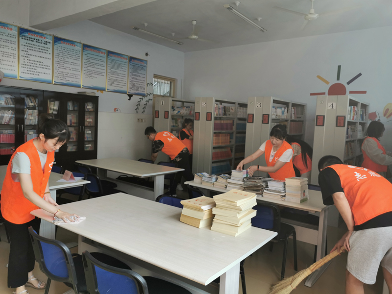 三尺讲台,四季耕耘。在山里田间,乡村教师这个群体为乡村孩子们带去了无数的希望。他们在平凡的生活和教育中为学生的成长操劳,他们用自己的付出和实践诠释出“责任“二字,他们是坚守在各自的岗位几十年如一日的乡村教师,没有什么比教育事业更需要爱心的坚守。本次中秋佳节正逢我国第35个教师节,图书馆志愿者们将大家亲手制作的月饼送给了益都街道小营小学的乡村教师们,并利用自身的专业为小学图书室按照《中国图书分类法》进行了排架、整理了乱架的图书,清理了学校图书室的环境卫生,以此感谢他们的执着坚守和默默奉献。