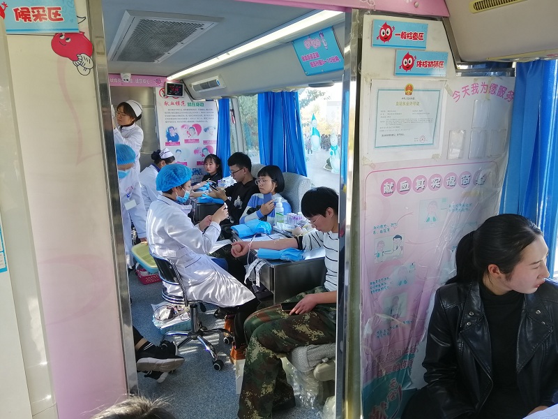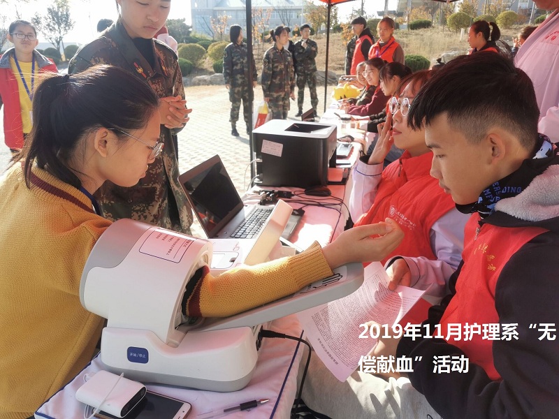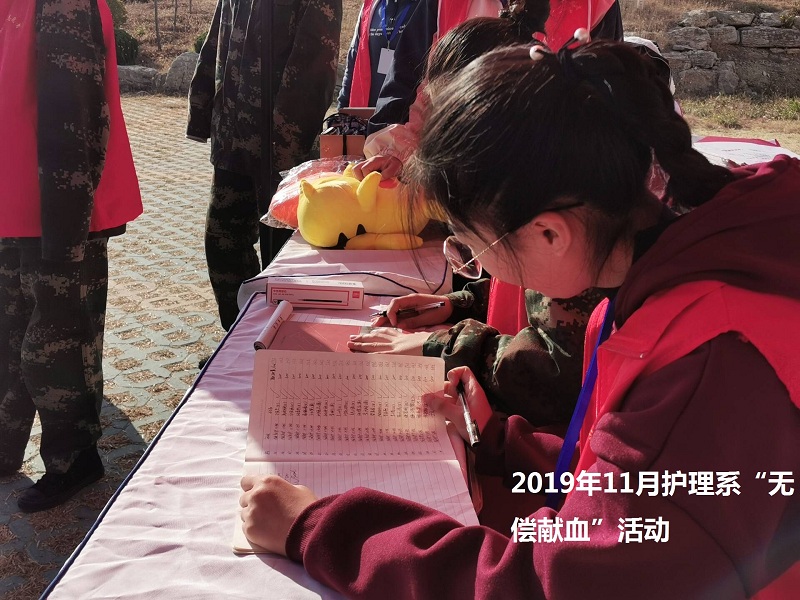 2019年11月4日,潍坊市血站的采血车开进我院主校区。护理系大学生积极参与了无偿献血志愿服务活动。大学生们除了勇敢地“撸起袖子”以实际行动践行南丁格尔精神,他们还自发地组成志愿者服务队为前来献血的同学提供力所能及的帮助。活动开始,血站工作人员与采血车一起来到我校,做好准备工作后,工作人员与志愿者就开始了紧张有序的工作。志愿者们为来献血的同学们核对身份证,帮助献血者登记。是询问献血者的献血史,告知献血者献血前后的注意事项。然后记录献血者的健康状况和血型。最后安排献血者排队去采血车,工作人员会对献血者的血液进行检测,评估献血者其血液的健康状况。在活动中表现出色的同学有李小川、吕宗芮、李梦娜、姜炎欣,刘玉磊、马怡昕等。