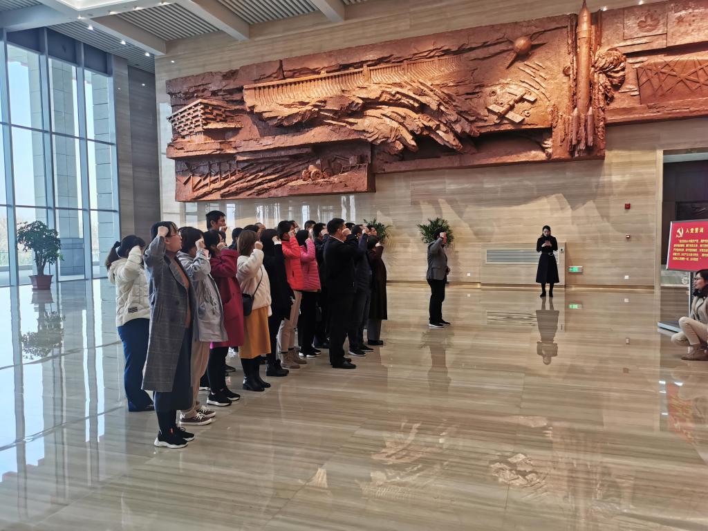 在展厅序厅,面对党旗,全体党员庄严宣誓,重温入党誓词,铭记初心使命。随后,在讲解员带领下,参观了“内忧外患,勇做民族独立主心骨”“百废待兴,甘做艰苦创业铺路石”“春潮涌动,敢做勇闯新路领头雁”“长风破浪,争做伟大复兴追梦人”四个篇章,每个篇章都通过不同形式展示出老一辈革命人、新一代奉献者不惧牺牲、为民务实的献身精神和逢山开路、遇水架桥的开拓精神,也充分印证了中国特色社会主义道路是正确的道路,是历史的选择。