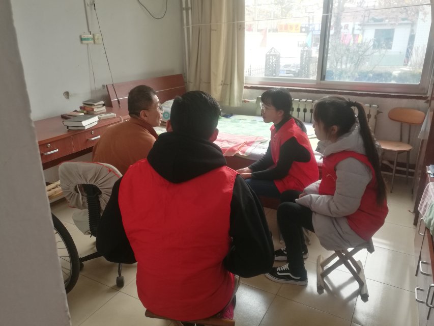 表演完节目后,学生们拿着自备的卫生工具,进入老人的房间劳动起来,扫地、擦窗户、捡垃圾、叠被子、帮老人捶背,给瘫痪的老人翻身,向老人们嘘寒问暖,不仅了解老人们的生活状况,给老人们讲故事、讲笑话,而且给老人们量血压、测血糖,关心老人们的健康状况。一下午,敬老院里始终萦绕着爱的暖流,场面温馨感人。