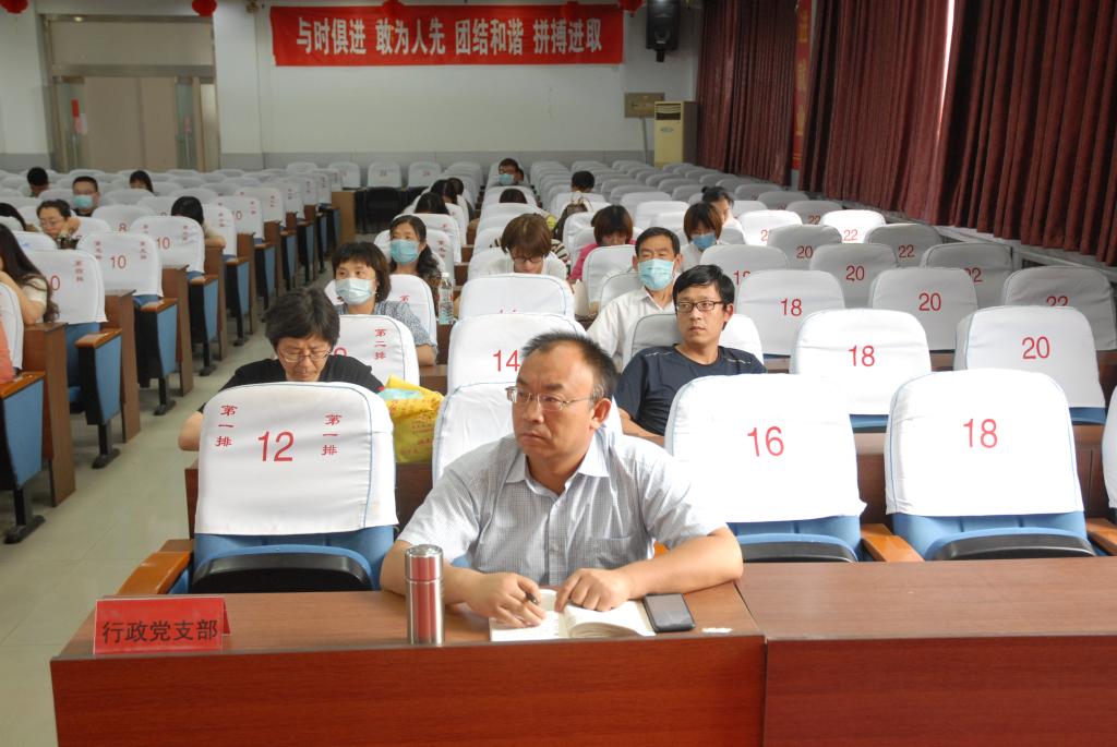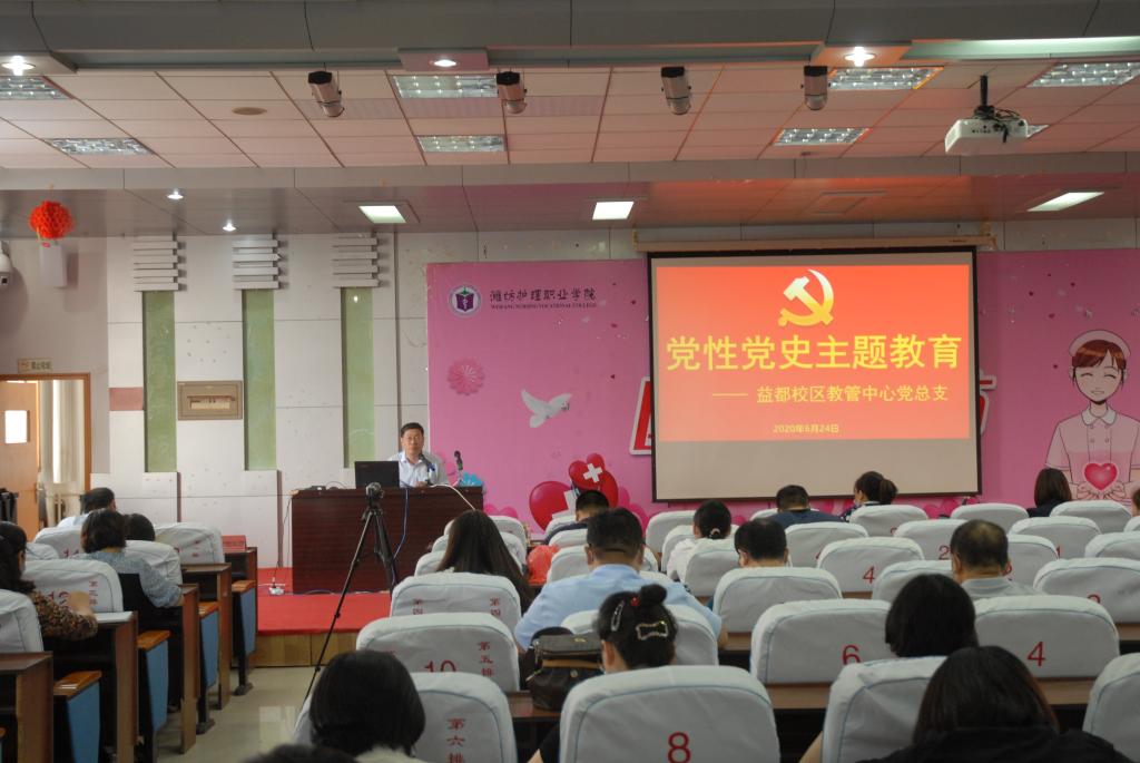 迎七一,学党史,强党性,根据学院党委安排,6月24日,益都校区教管中心党总支在综合楼六楼报告厅召开会议,开展党性党史主题教育。行政党支部、医院党支部、老干部第一党支部、老干部第二党支部全体党员和入党积极分子,益都校区教管中心、附属医院、牙科医院及其他派驻科室全体教职工参加活动。