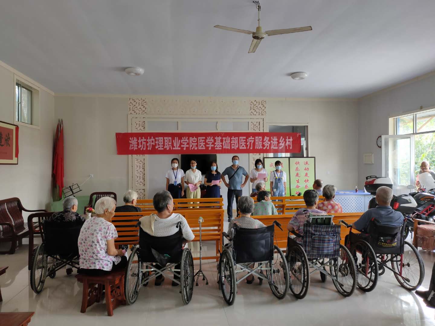 为进一步做好关爱老年人健康工作,提升老年人的健康意识和抵御疾病的能力,使他们的老年生活过得更加科学、健康和快乐。9月7日上午,医学基础部走进康百福养老院开展老年健康知识讲座活动。