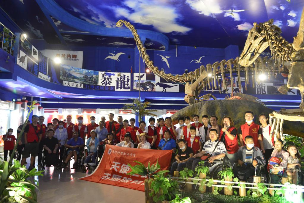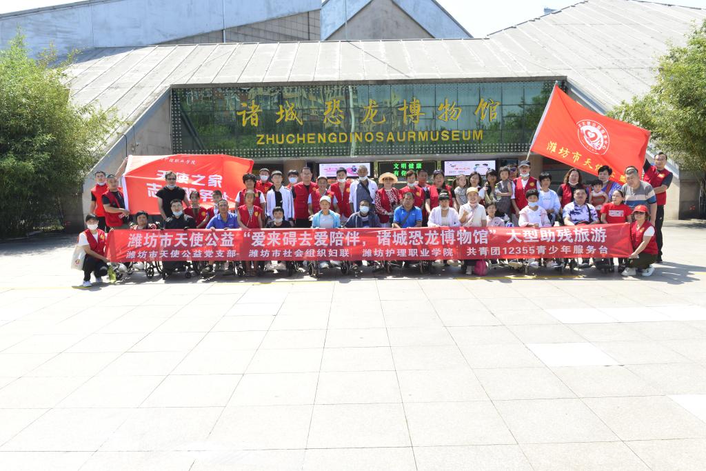 9月5日,潍坊市天使公益服务中心组织金秋“爱来碍去,融入自然”大型助残出游活动,组织社会残障人士赴诸城恐龙博物馆参观。潍坊护理职业学院党员志愿者、学生积极分子志愿者有幸参加了此次活动。