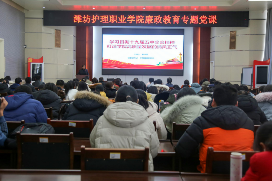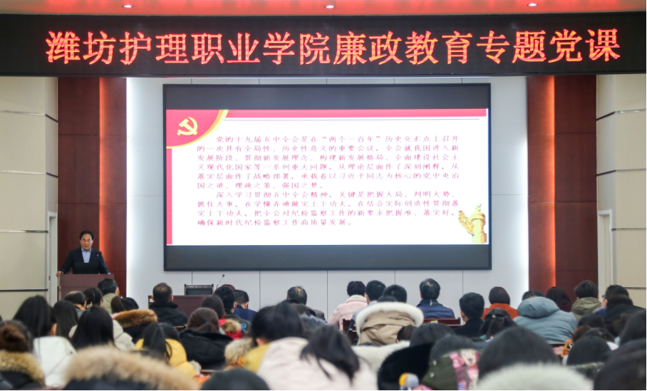 为深入贯彻全面从严治党要求,进一步加强党风廉政建设,增强党员干部的纪律规矩意识,提高党员干部的拒腐防变能力,2020年12月9日下午,由行政第一党支部和马克思主义教研部党支部牵头组织,学院主校区各支部联合在2号教学办公楼一楼会议室举办廉政教育专题党课。学院纪检监察处处长崔书田以“学习贯彻十九届五中全会精神,打造学院高质量发展的清风正气”为题,给各支部党员和教师上了一堂精彩生动的廉政教育专题党课。学院党委委员、纪委书记高凌云出席党课。主校区各党支部书记、党员和部分教师参加党课。专题党课由马克思主义教研部党支部书记潘永忠主持。