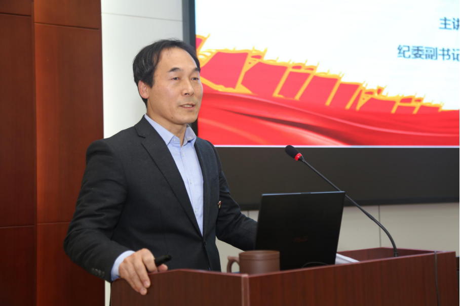 在谈到全会最重要的成果“一个《建议》”时,崔书田总结了三点感受:布篇谋局,“新”意满满;心系百姓,人民至上;忧国忧民,胸怀天下。在讲到如何写好新发展阶段下纪检监察工作落实党中央决策部署这一新篇章时,他给出了三条建议:准确把握五中全会新内涵;立足本职本责,聚焦主责主业;做好落实文章,持续强化高校纪检监察体制改革。对于高校所面临的全面从严治党和党风廉政建设及反腐败的严峻任务,崔书田通过对时事新闻及各级监委网站通报的典型案例展开深刻的剖析,指出要深刻把握反腐败斗争形势和规律,全体教职工要不断提高贯彻新发展理念的能力和水平,坚决贯彻落实党中央重大决策部署,增强“四个意识”,坚定“四个自信”,做到“两个维护”,共同营造风清气正的良好政治生态,为学院在新发展阶段高质量发展做出自己应有的贡献。