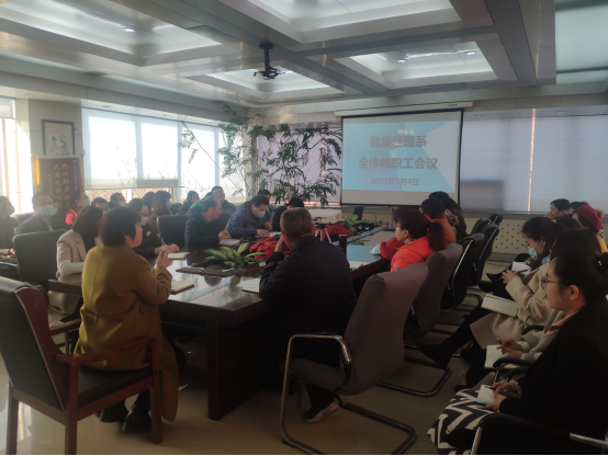 3月4日上午,健康管理系(国际交流合作中心)在办公楼201召开了新学期第一次全体教职工大会,传达学院干部会议精神部署新学期工作。