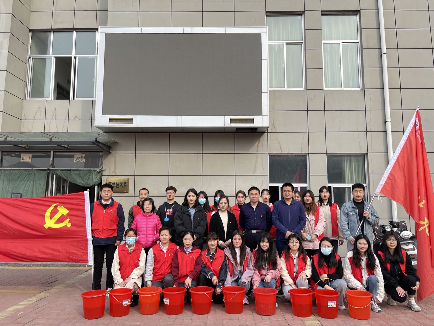 初春的天气还带着凉意,但医学技术系党支部的党员干部职工和学生们却都热情高涨,干劲十足,大家分工协作,配合默契。同学们分成小组,以组为单位对校园的树木进行绿色修剪,为树木浇水和填土,辅助树木的生长,为校园的绿色环境尽自己的一份力量。
