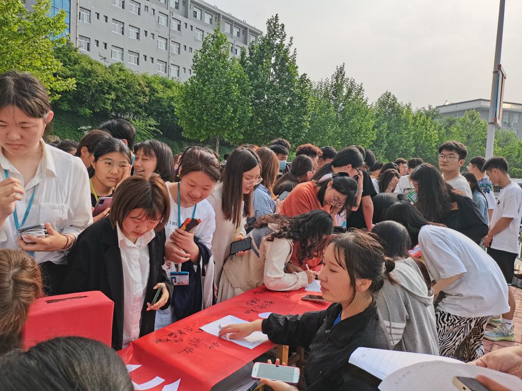 医学技术系的同学们在医学技术楼西门口进行文艺表演,吸引过往同学们纷纷驻足观看,并将自己的爱心捐款投入到募捐箱中,一天时间内筹集捐款达2000元,将全部用于“希望小屋”项目工程建设中。与此同时,为了发动更多的人参与进来,同学们在“希望小屋 筑梦起航”的宣传条幅上签下了自己的名字,并加入到了宣传募捐的队伍中。