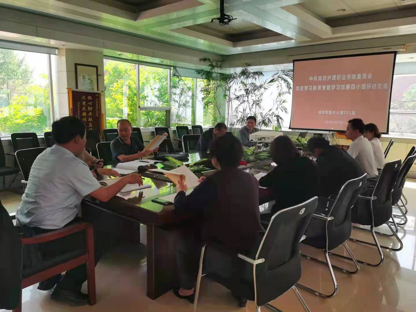 5月17日下午,中共潍坊护理职业学院委员会党史学习教育专题学习班第四组按照学院党史学习教育专题学习班学习安排,在潍坊校区办公楼201召开研讨交流会,围绕习近平在党史学习教育动员大会上的讲话精神,习近平总书记视察山东重要讲话、重要指示批示精神以及中央宣讲团首场报告会展开主题研讨交流,本次研讨由组长王庆汉主持。